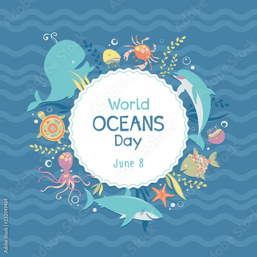 Beautiful world ocean day poster.